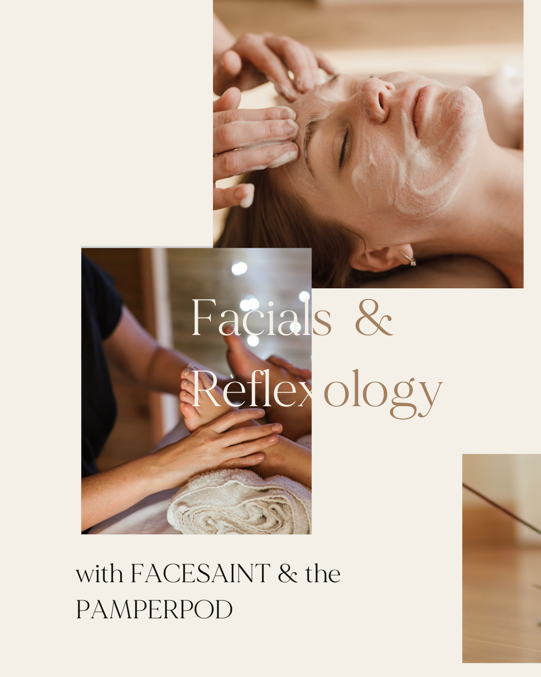Each guest attending can choose from a 45 min tension-melting neck, shoulder and face massage from Rebekah SkinSaint or a reflexology treatment from Kris PamperPod. The treatment is included in the price of your day ticket. Alternatively, you can opt for the package without a treatment.