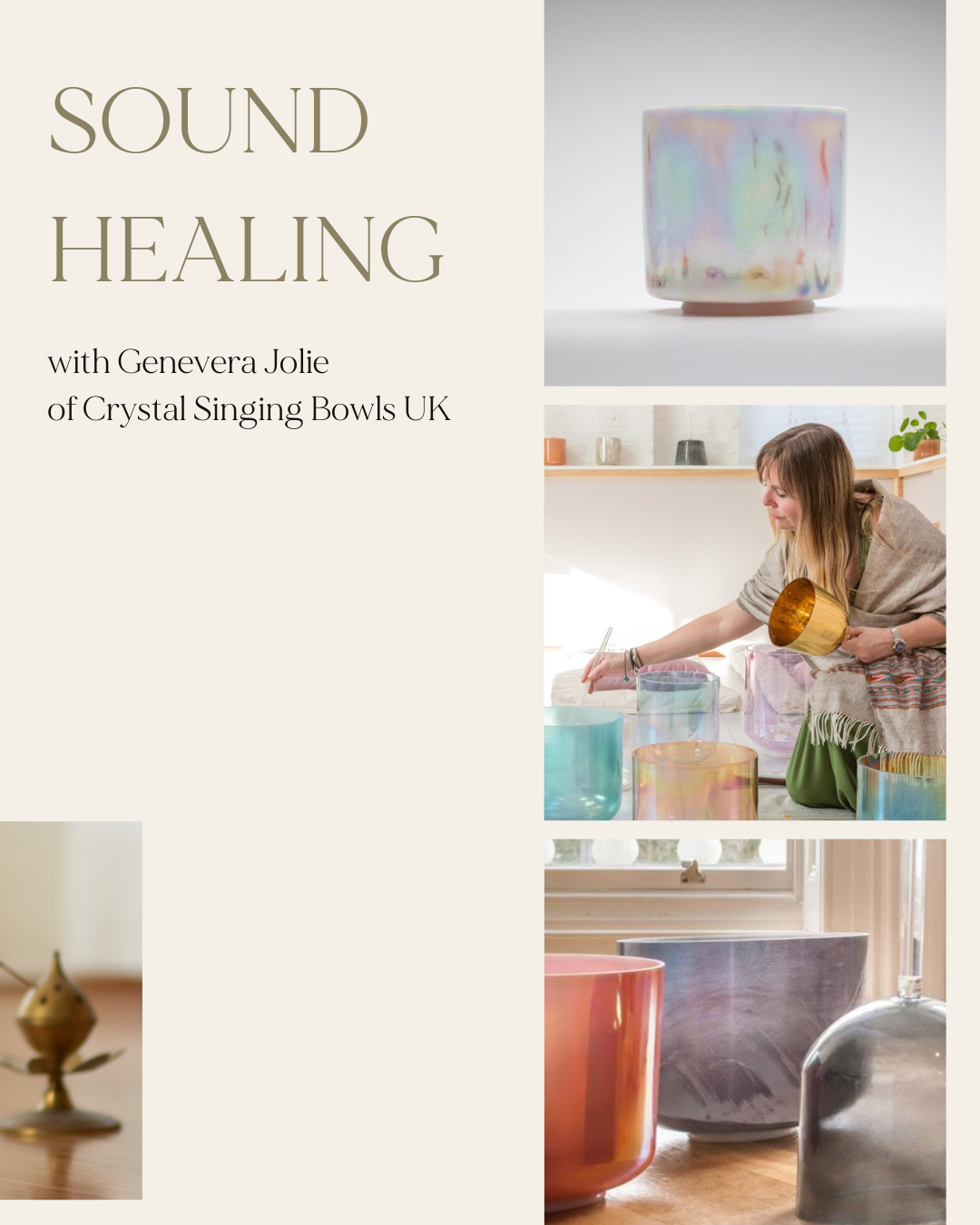 Your day will end with the transformational experience of sound healing and crystal bowls, led by Genevra Jolie, the UKs leading sound healer. If you haven’t tried sound healing yet, this will be a magical treat for you.