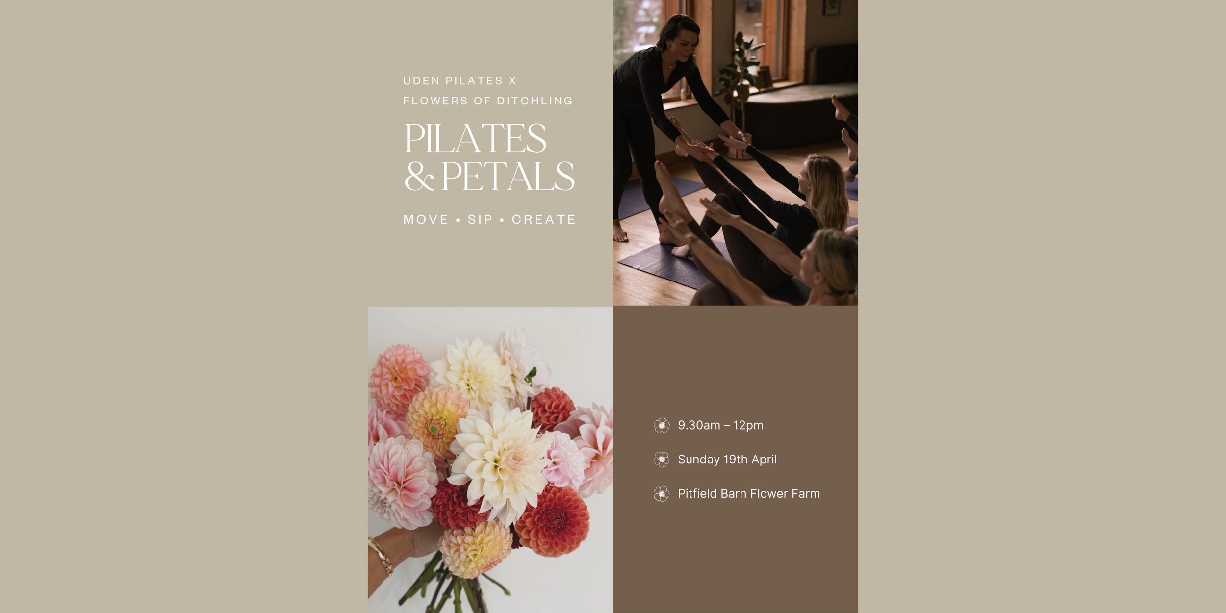 Step into a morning of elegance and renewal at our Pilates & Petals mini retreat on Sunday 19th April, in collaboration with Flowers of Ditchling, set at the beautiful Pitfield Barn Flower Farm.